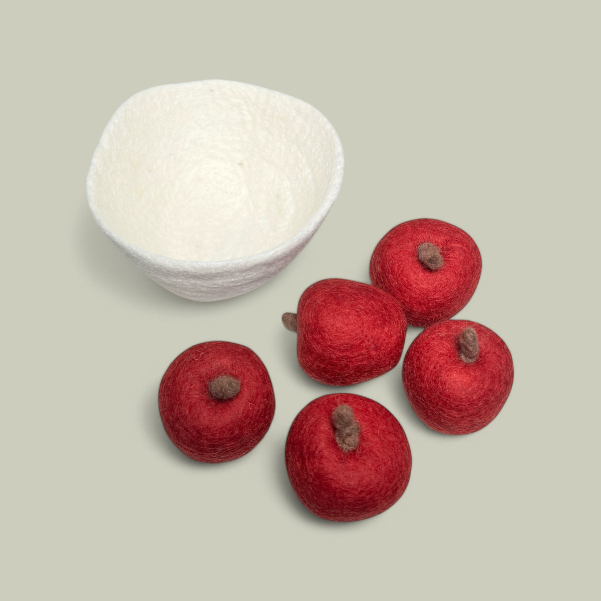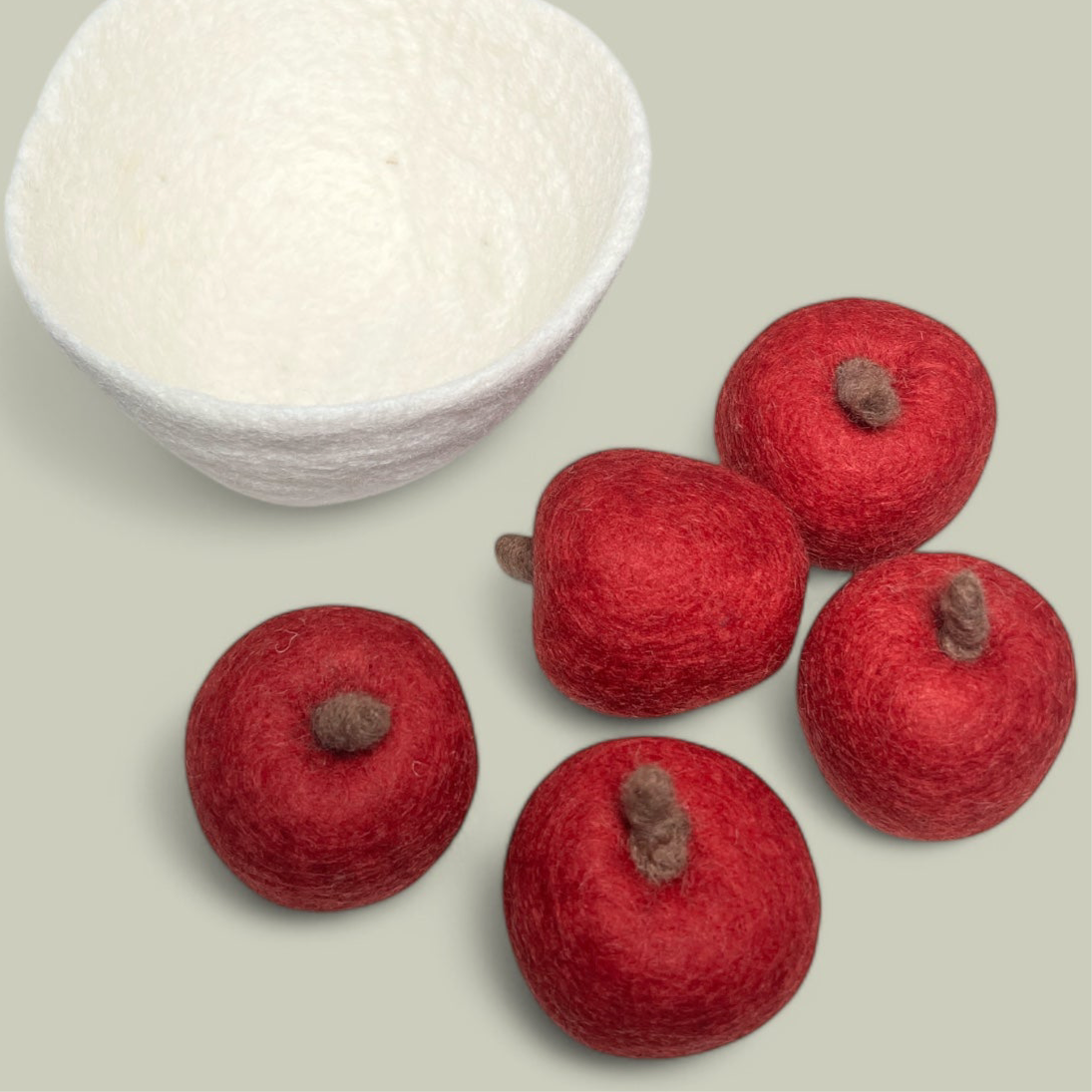 Bring a crisp, fruity touch to playtime with this set of 5 felt apples.