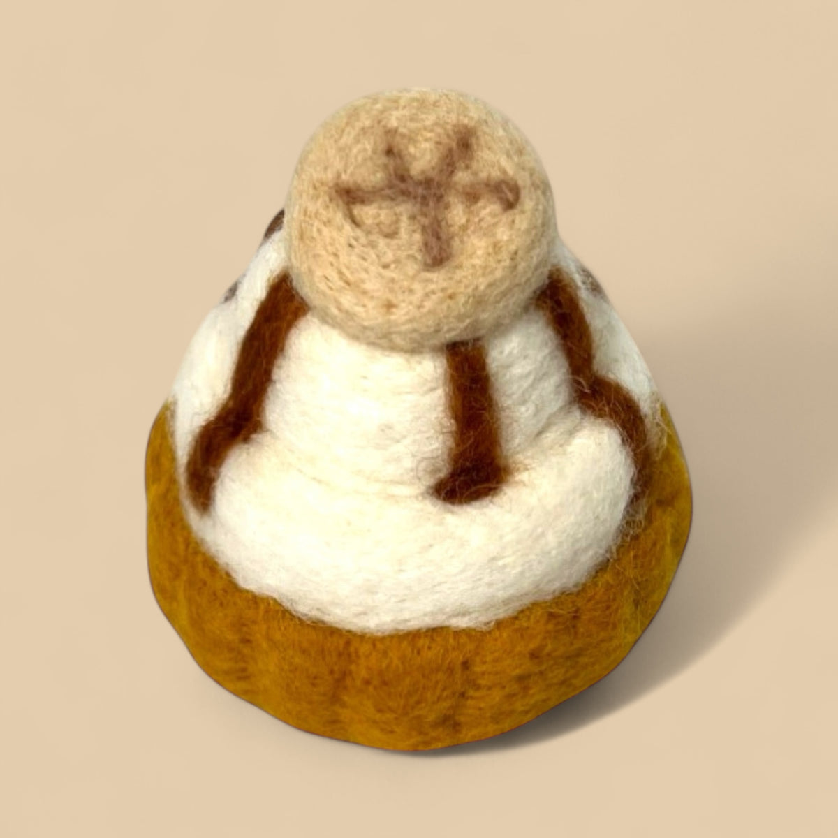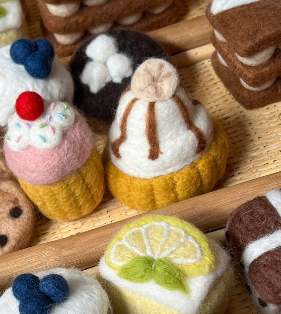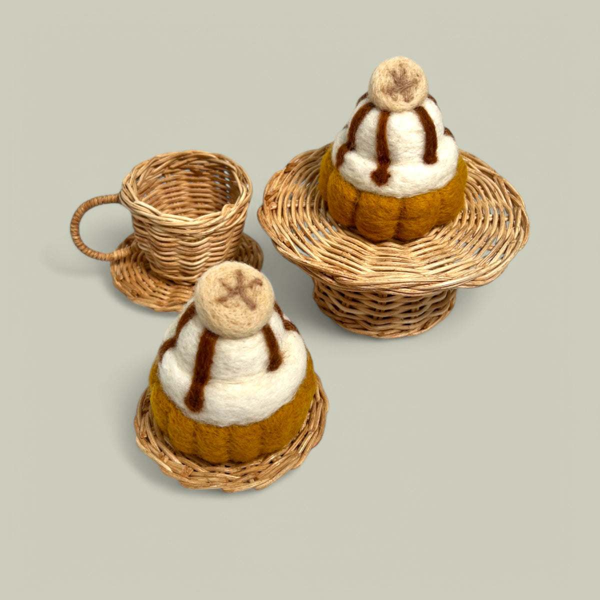 Featuring a pastry base, cream filling with a drizzle of caramel sauce, and a sweet felt banana on top—perfect for pretend baking and play kitchens. It’s sure to be the star of any playtime dessert table!