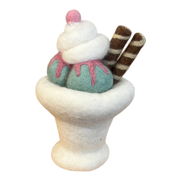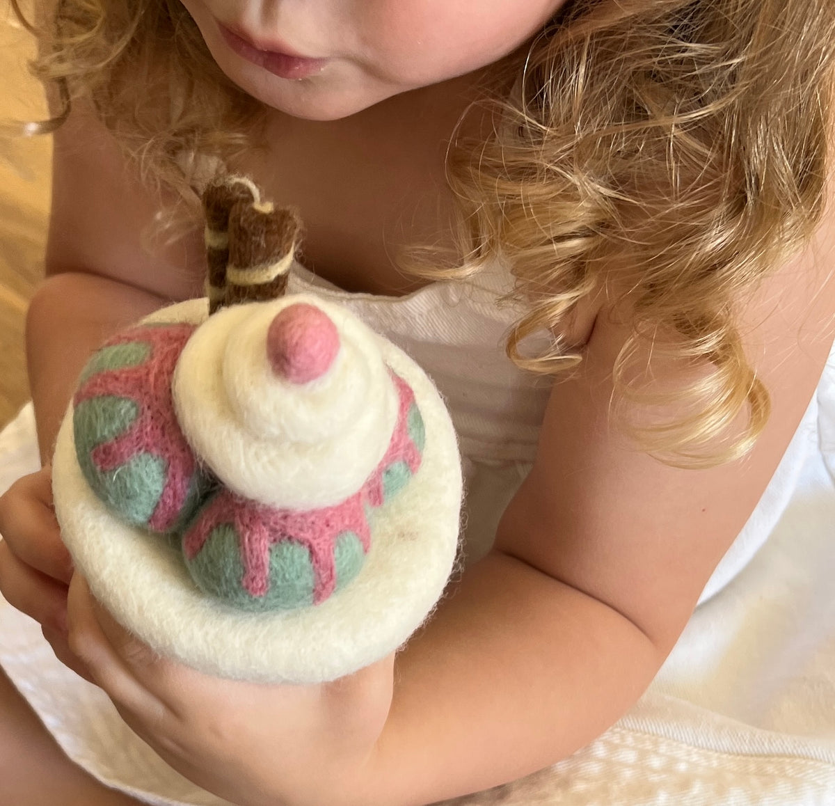 Our scrumptious Sundaes are handcrafted from soft natural wool and non-toxic dyes, using a combination of wet felting and needle felting techniques.