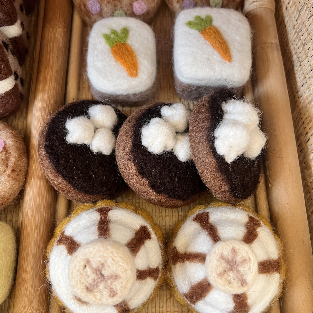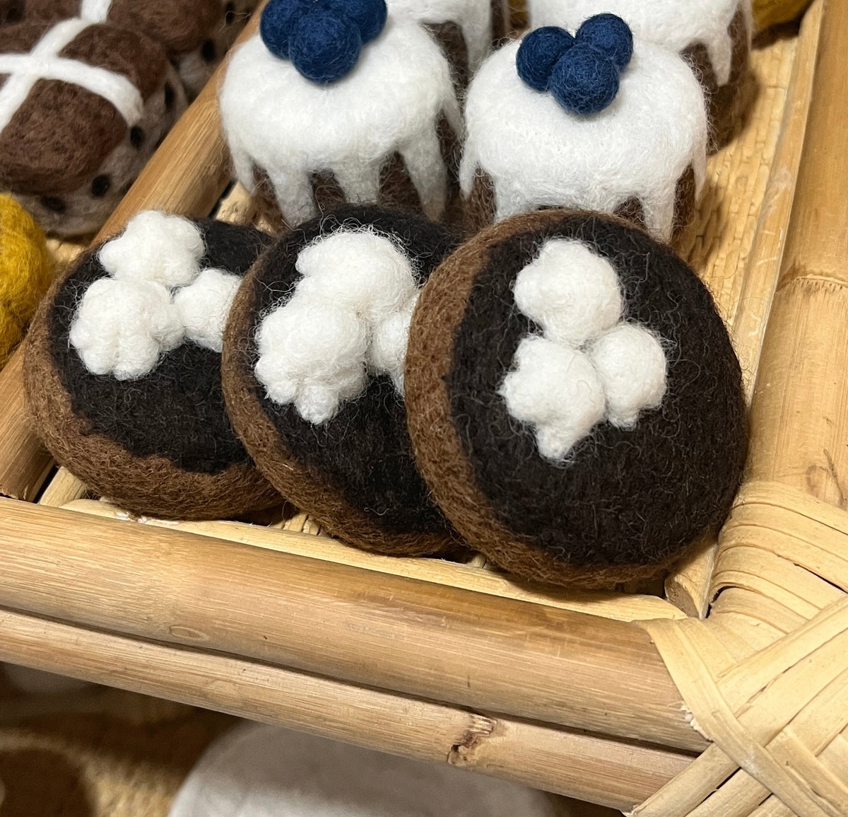 Our Chocolate Tart features a velvety chocolate filling with three soft cream swirls on top, perfect for playtime indulgence. Ideal for pretend bakeries, tea parties, or dessert tables, this tart will add a sweet touch to any play kitchen.