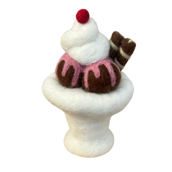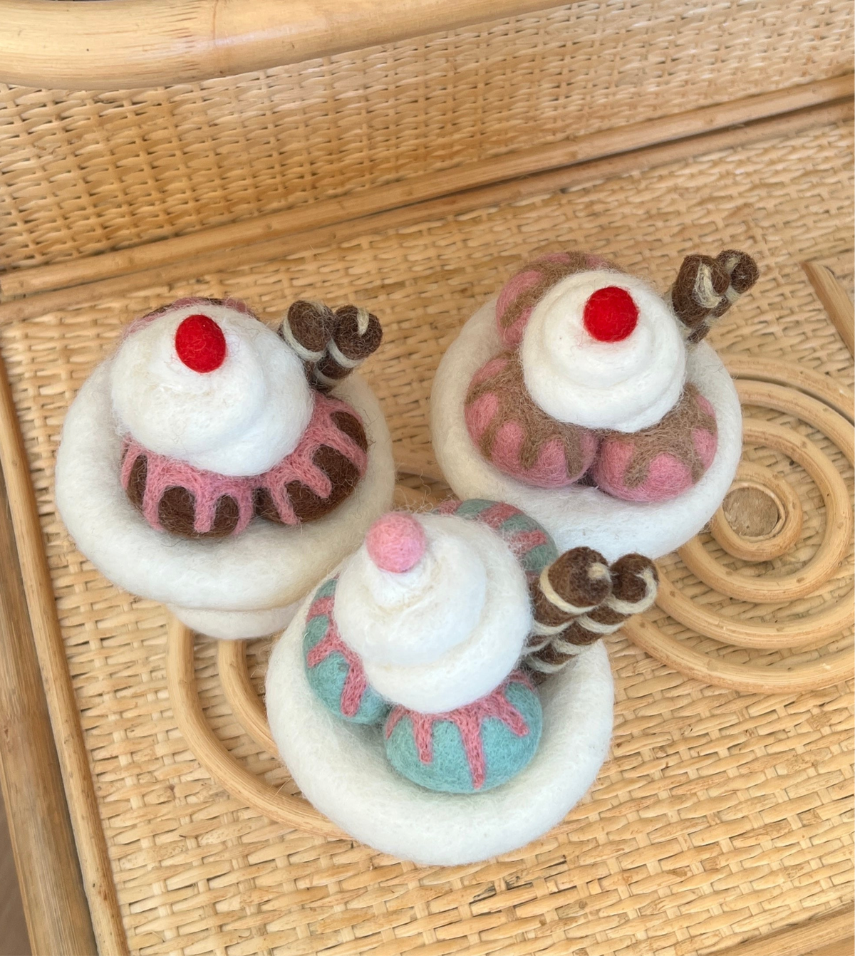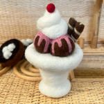 Our scrumptious Sundaes are handcrafted from soft natural wool and non-toxic dyes, using a combination of wet felting and needle felting techniques.