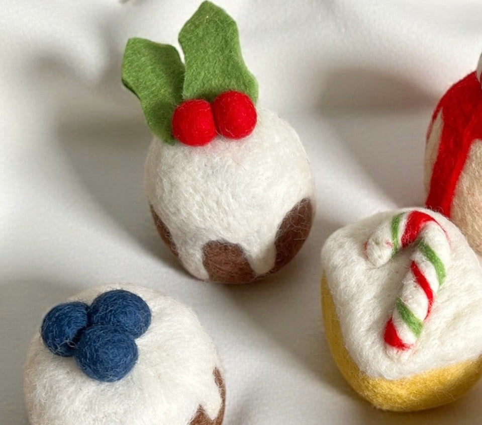 1 x Felt Christmas Cake with Holly (12cm H x 6cm W)