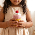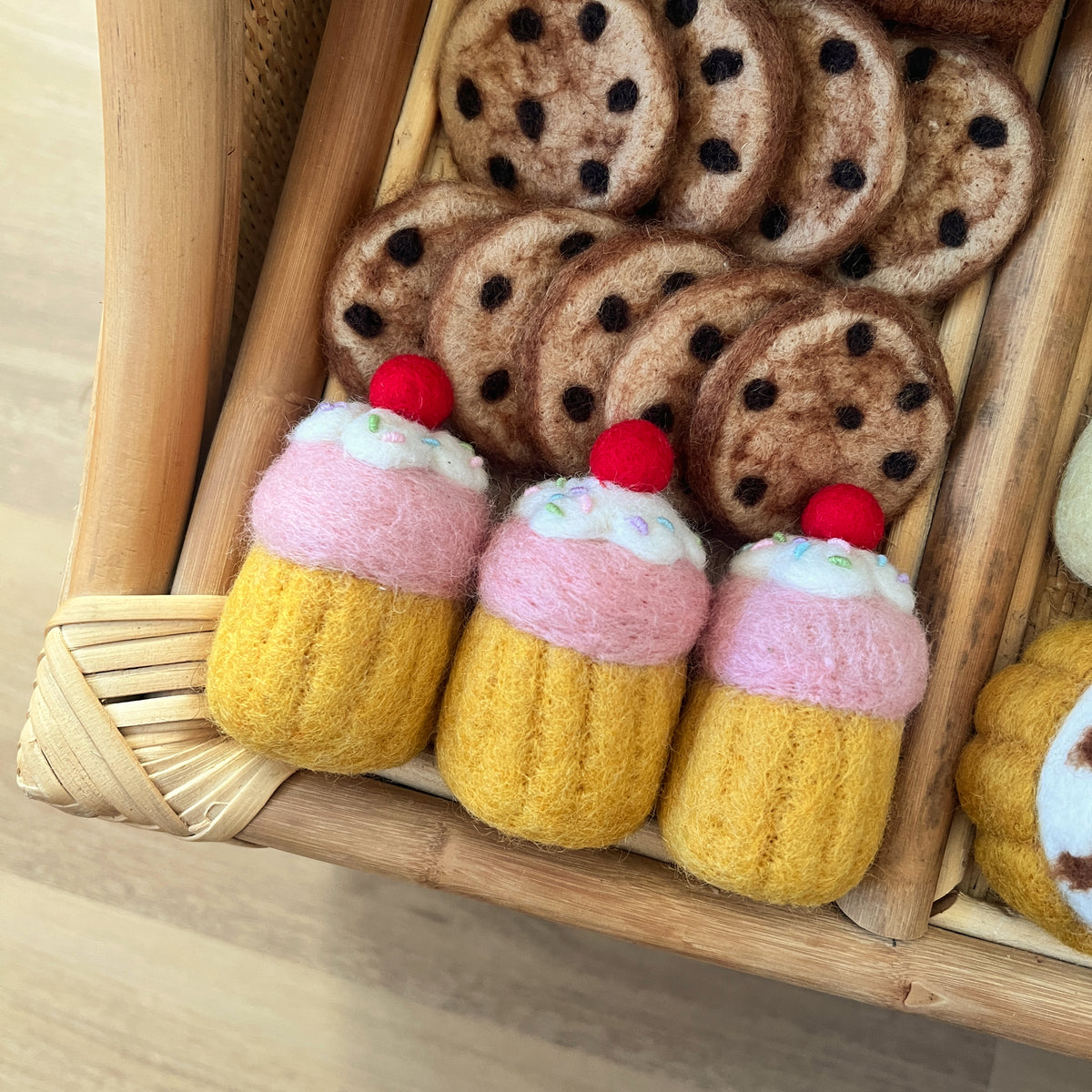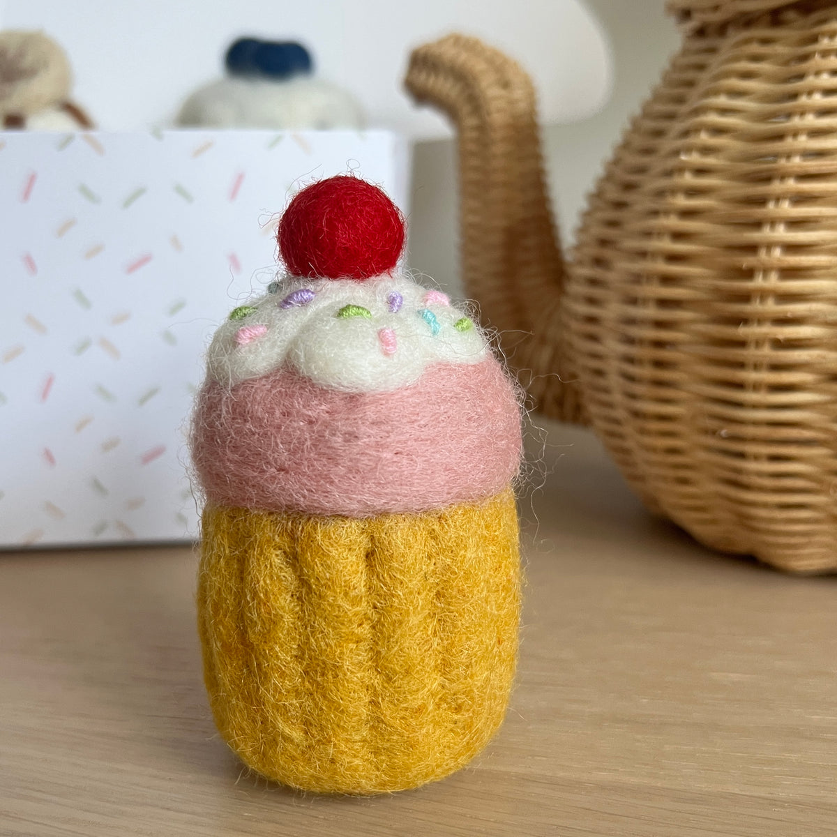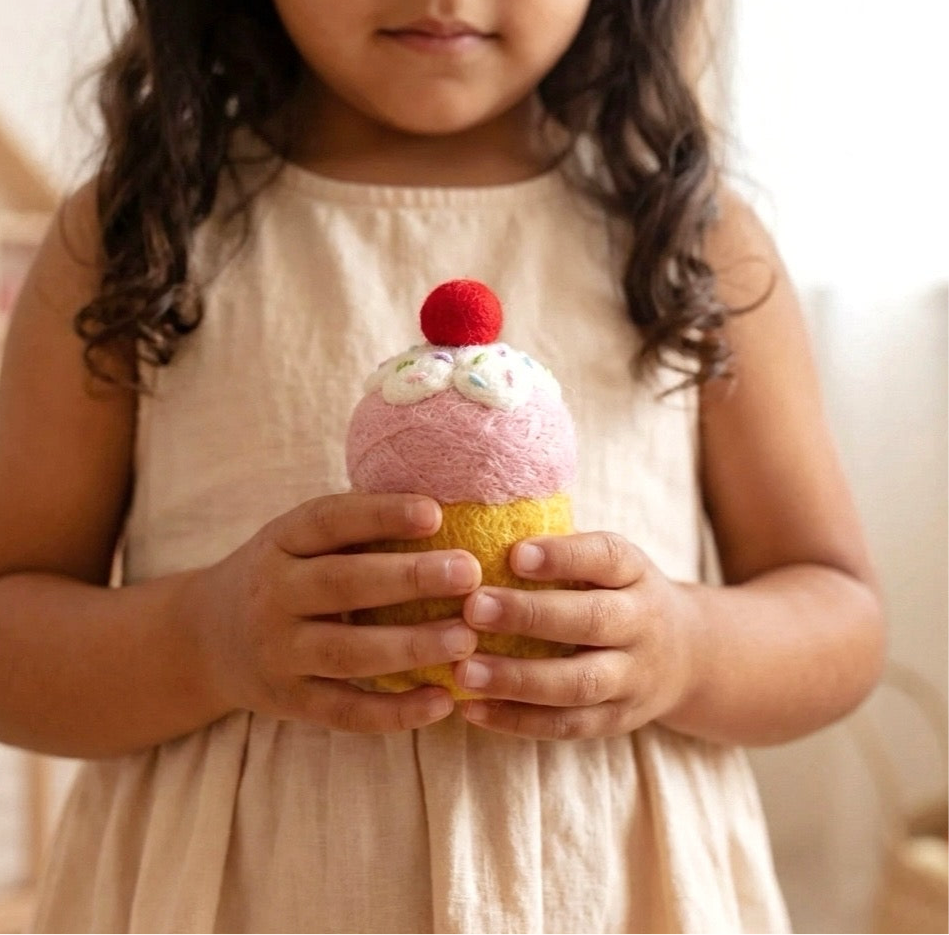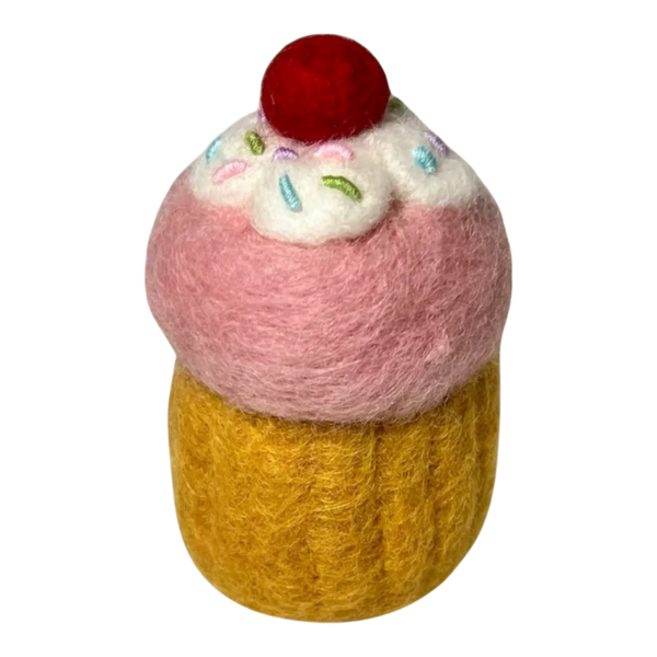 Our adorable Pink Cupcake is handcrafted from soft natural wool and non-toxic dyes.
