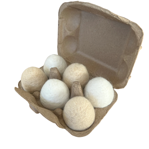6x Felt eggs (3 white and 3 beige) in egg carton