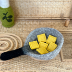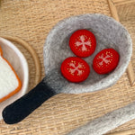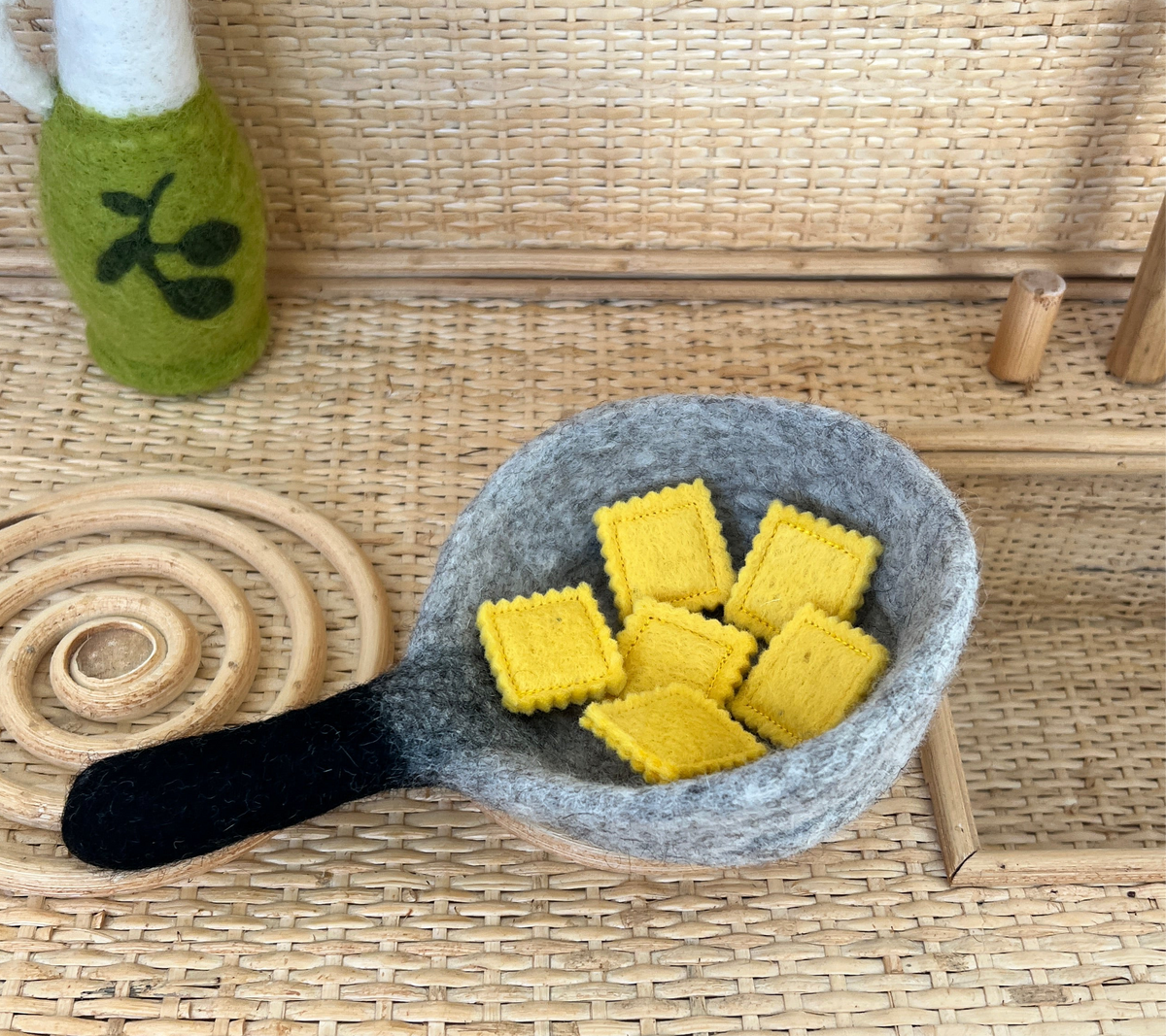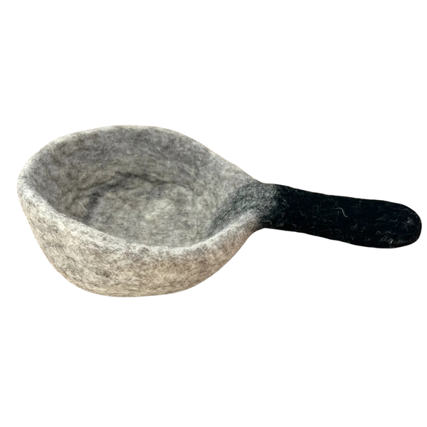 Handcrafted with love from soft, natural wool and coloured using non-toxic dyes, this felt frypan is the perfect piece for every little chef’s play kitchen. Lightweight yet sturdy, with a flat base and handle, it’s designed for pretend frying, flipping, and serving up delicious imaginary creations.