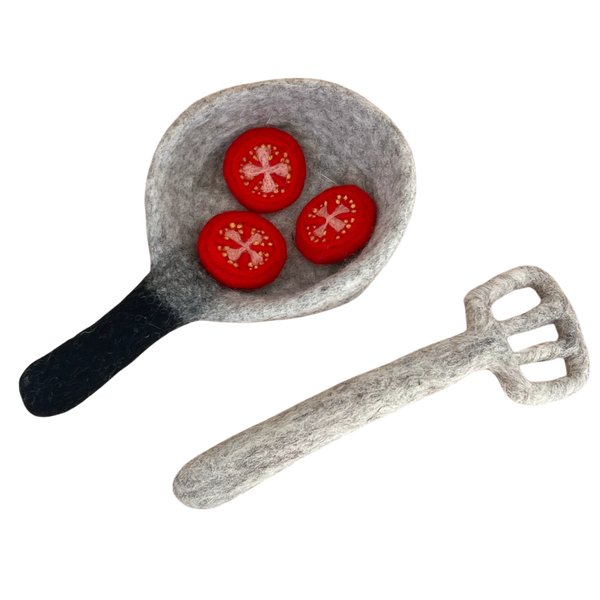 Bring the kitchen to life with our charming Felt Frypan & Spatula Set.