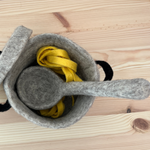 Lovingly handcrafted from soft, natural wool and coloured with non-toxic dyes, this felt ladle is the ultimate tool for little chefs. With its rounded bowl and long handle, it’s designed for scooping, serving, and stirring all those imaginative dishes bubbling away in the play kitchen.
