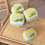 It features a soft sponge base, a layer of white icing, and a beautifully detailed lemon slice with a mint leaf on top. The perfect zesty treat for any playtime spread!