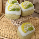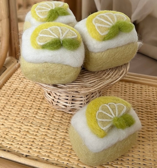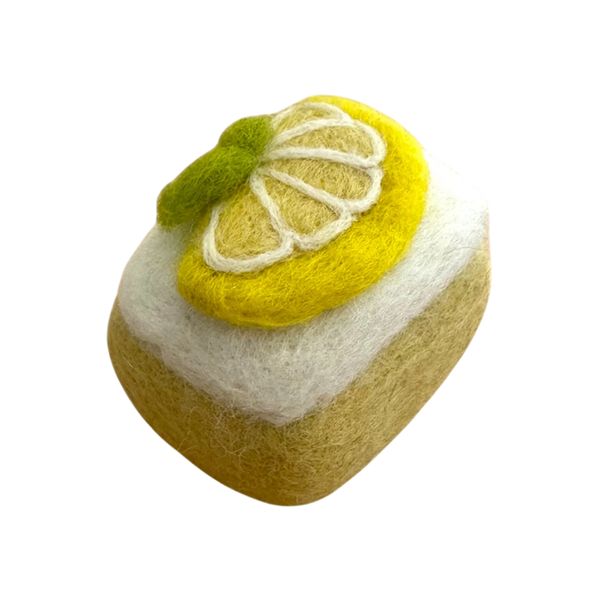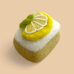 Our adorable Lemon Sponge Cake is lovingly handcrafted from soft natural wool and non-toxic dyes.
