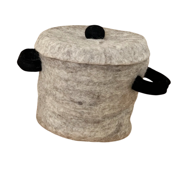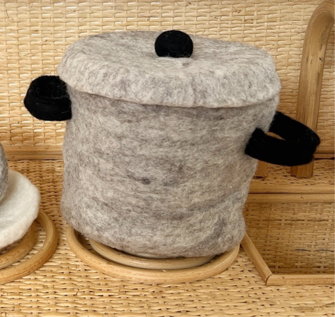 Lovingly handcrafted from soft, natural wool and coloured using non-toxic dyes, this charming cooking pot brings a touch of realistic, eco-friendly fun to imaginative play.