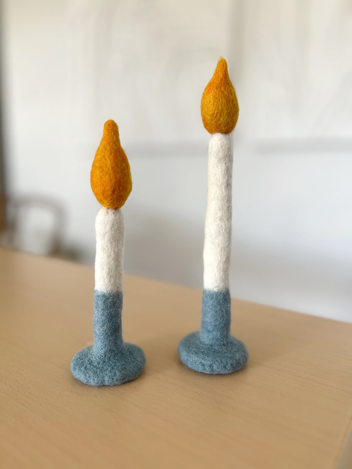 2 x Felt candles - Tall Candle: 5cm (D) x 20cm (H) Short Candle: 5cm (D) x 15cm (H)
