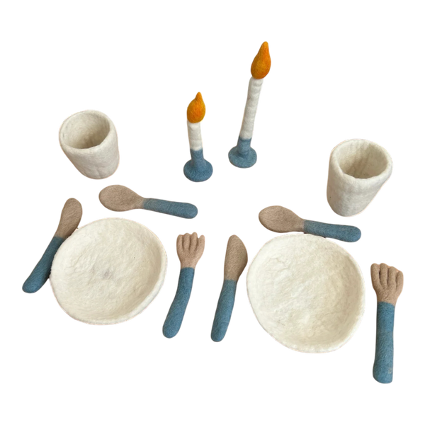 Dinner is served! This handcrafted felt dining set is perfect for little hosts to create big feasts and magical mealtime adventures.