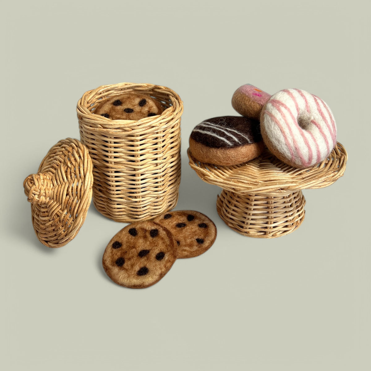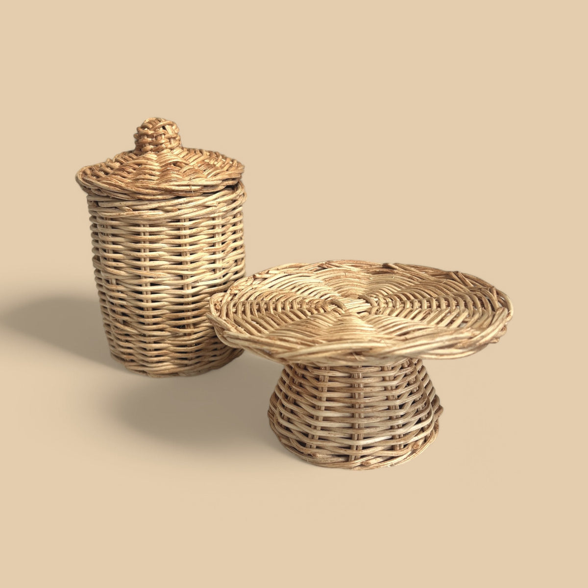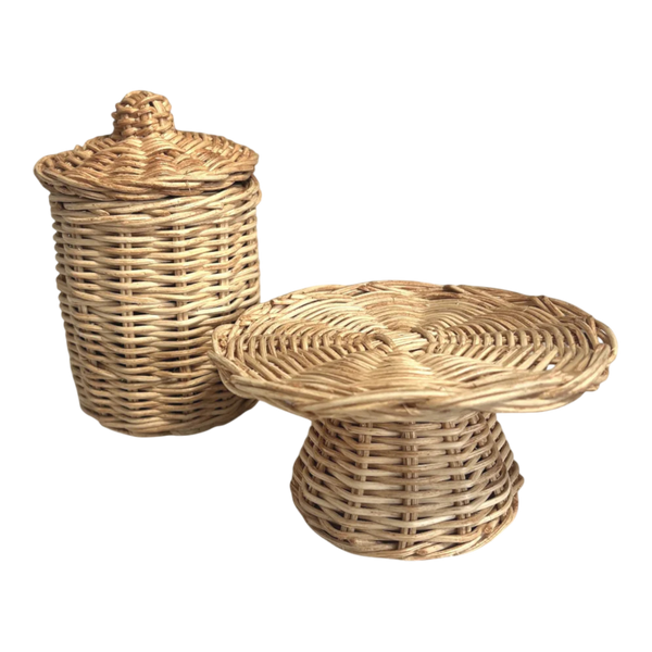 Toy Cake Stand & Cookie Jar - Natural Rattan
