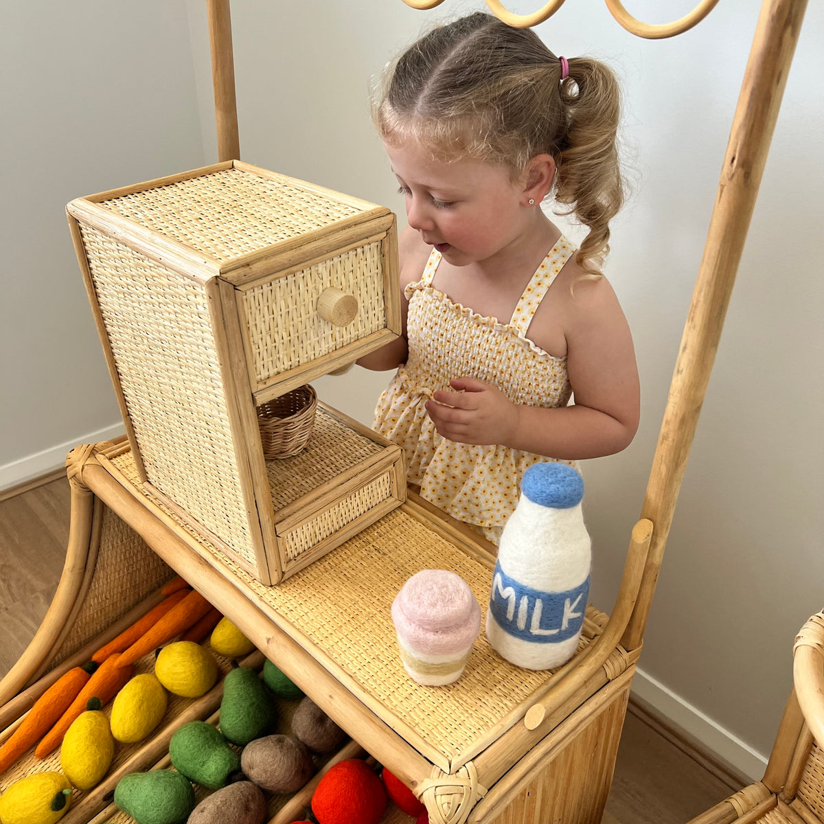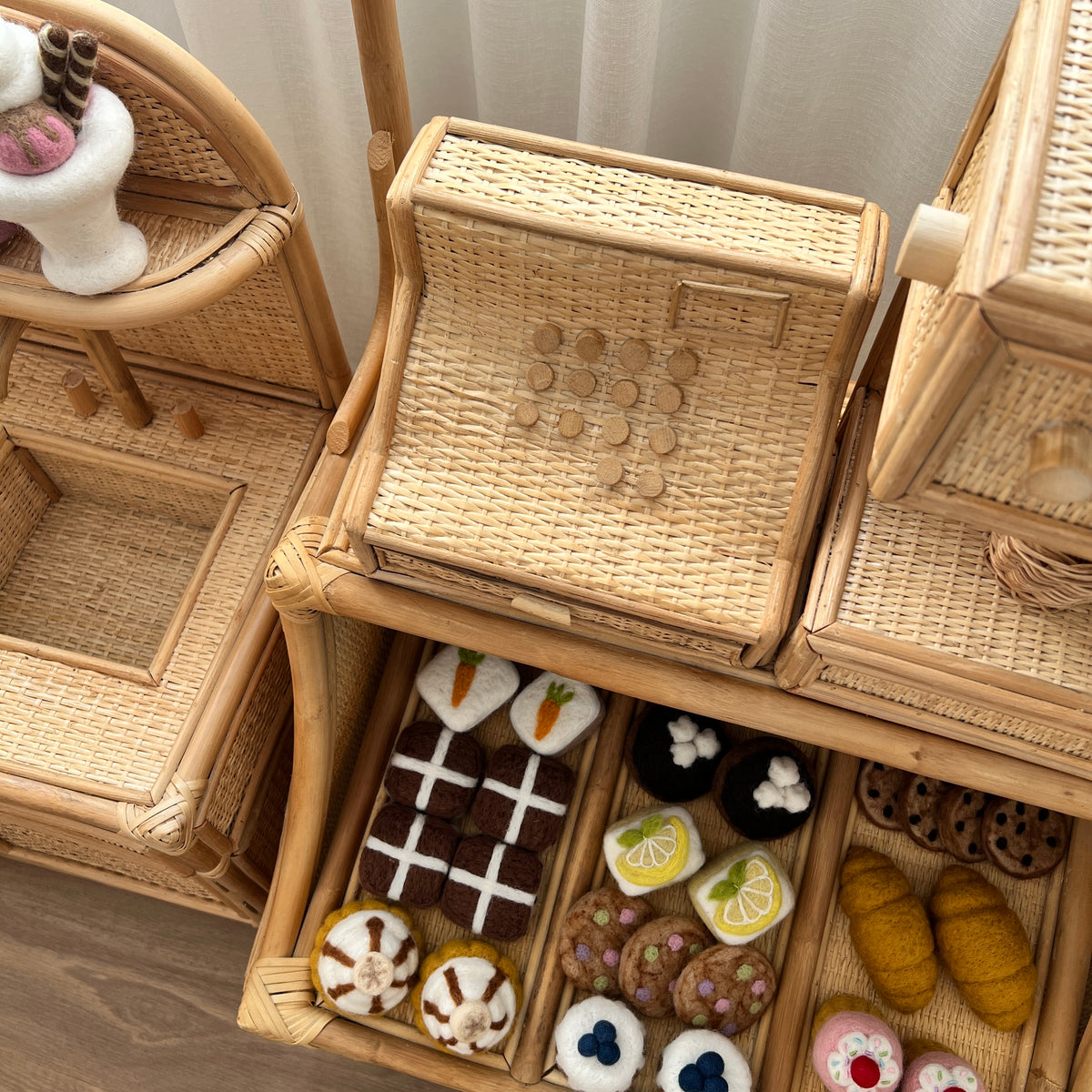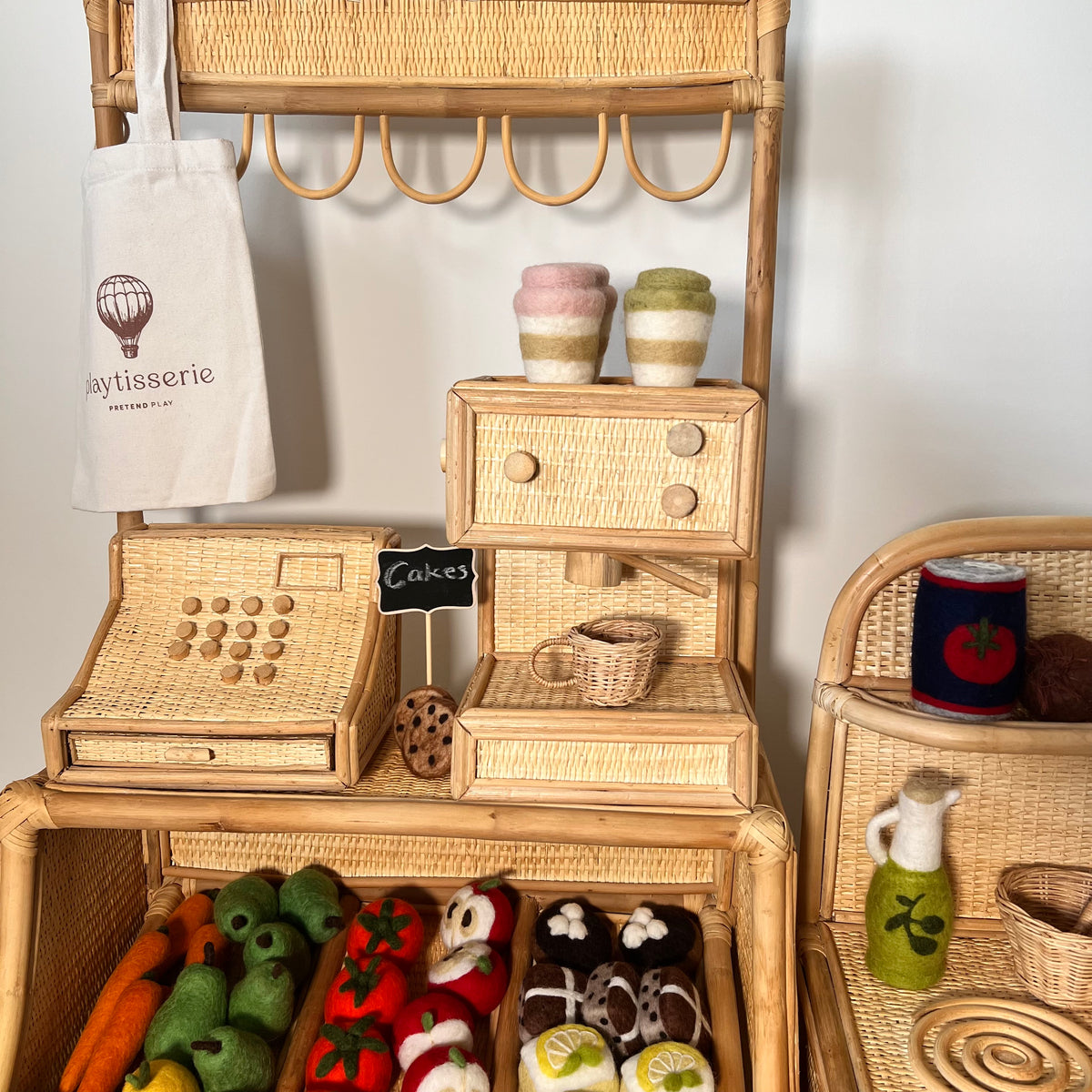 Calling all little shopkeepers and mini baristas—this one's for you! The Ultimate Shop & Cafe bundle has everything needed to run a bustling café or shop, including a beautifully crafted rattan shop stand, a trusty cash register, and a coffee machine for those “busy morning rushes.”
